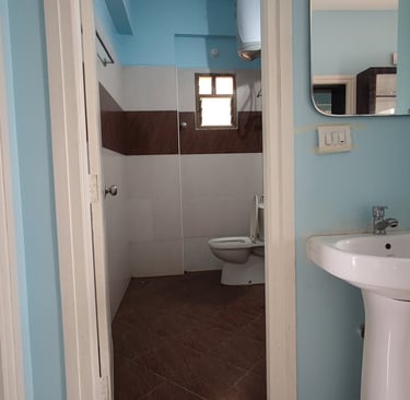 Second bedroom is spacious enough and is ached to exclusive balcony that provides wide open view to areas high rise communities. A refreshing wide view for eyes. Wardrobes are fixed and bigger in size and can accombidate all the luggage and other belongings. Top shelfs can hide all your travel and unused luggage. Common bathroom is adjacent to it and has heater and exhaust vents along with washbasin.