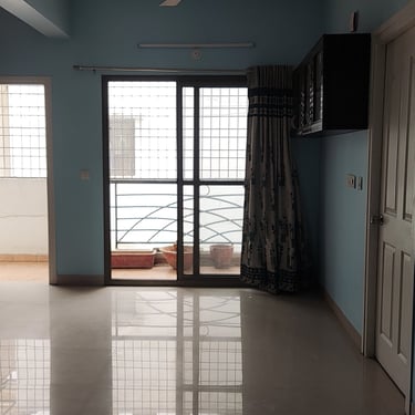 Spacious 17' * 11' Hall with proper ventilation and window overlooking wide empty area of other high-rise community. This foyer less living room is lengthy enough to arrange 2+3 Sofa and Dewan. You can choose either side to house TV & Decorative Shelf / Cabinet. Central common area provides access to all the rooms including big atrium access to Hall.