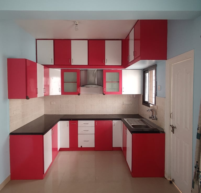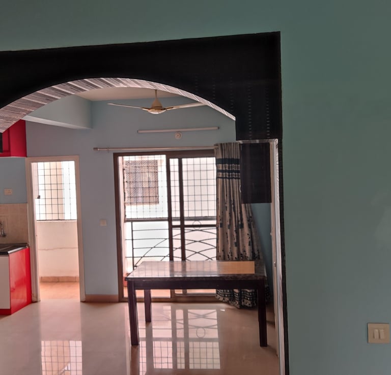 Kitchen is spacious 9'*9' with access to utility room. It has connection to drinking water and provision of aqua vent. It can hold big refrigerator. It has fitted with chimney and modular kitchen aged 12 years. It can serve 5 to 7 years more before renovation. Community is planning for Piped gas. Association has added few extras and keep committed to few more like piped gas.
